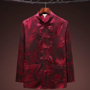 Costume rétro à motif dragon chinois couleur unie